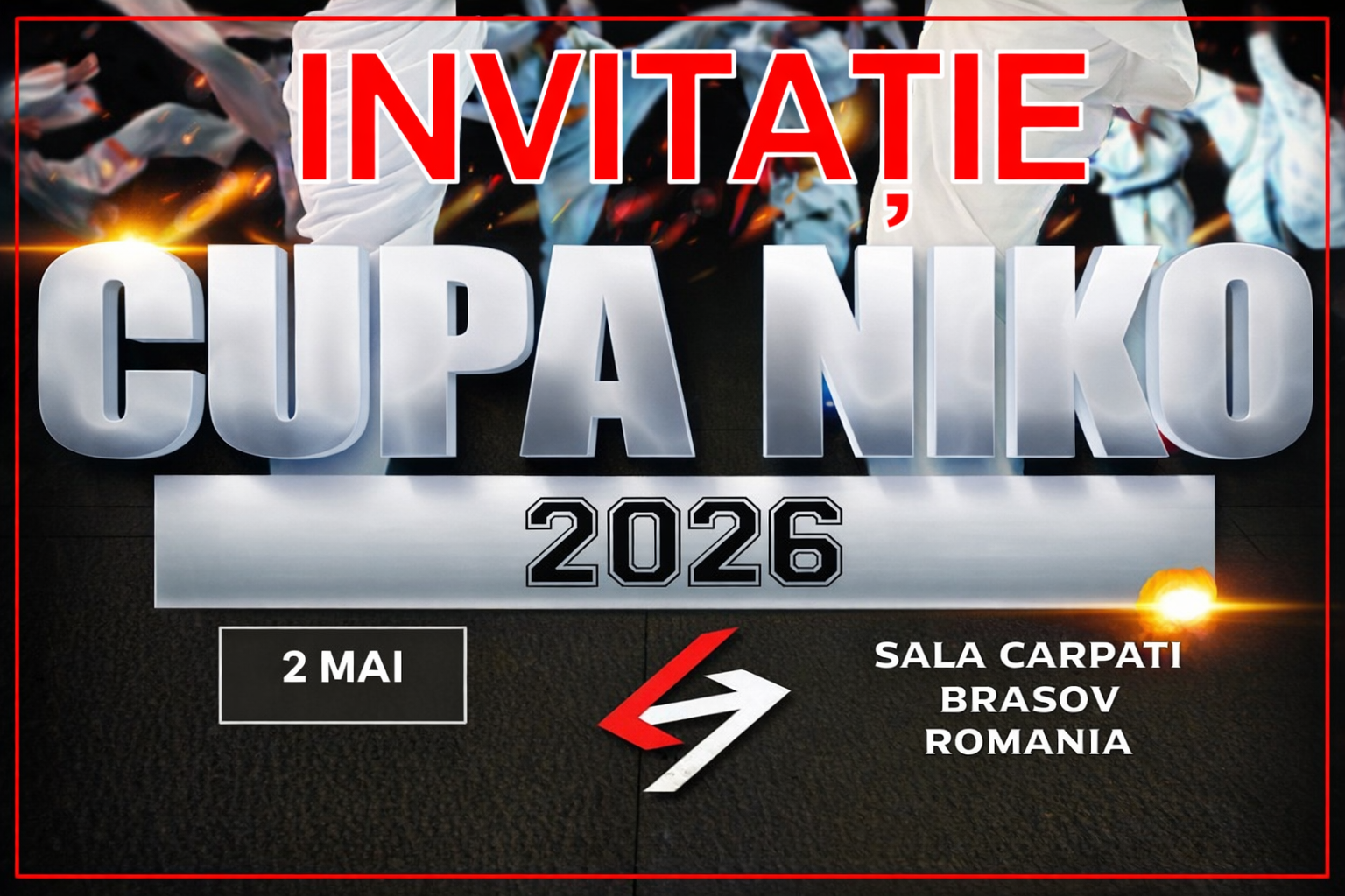 Osu! Stimați președinți de club, sportivi și antrenori, Avem onoarea de a vă invita să participați la Cupa NIKO Editia 2 - 2026, un eveniment de referință în lumea Ashihara Karate, ce se va desfășura la SALA SPORTIVA CARPATI din BRASOV în data de 2 MAI. Această competiție este mai mult decât un simplu turneu – este un moment deosebit în care ne reunim forțele într-o nouă formulă, cea a reprezentanților NIKO, pentru a duce mai departe valorile și spiritul stilului nostru.